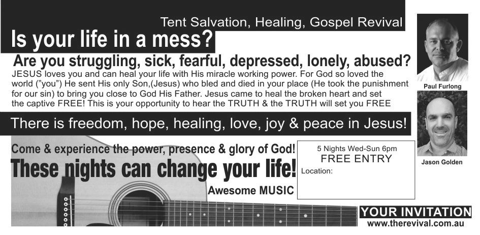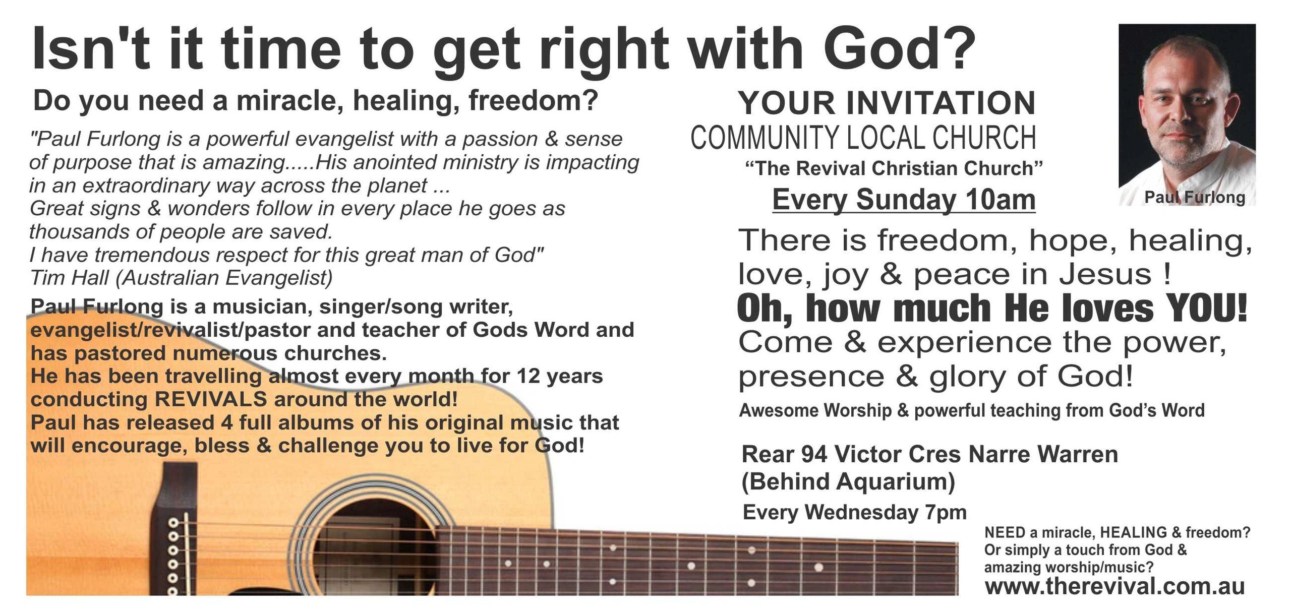 Pastor Paul Furlong is conducting Concerts & open air revivals across Melbourne & Victoria weekly...